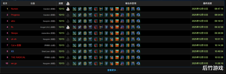 从CTM开始,怀旧服打本难度加大,MOP也是如此,不过对这些竞速公会来说,区别不大。有趣的是,本次首杀争夺,前十几乎清一色的为部落公会。